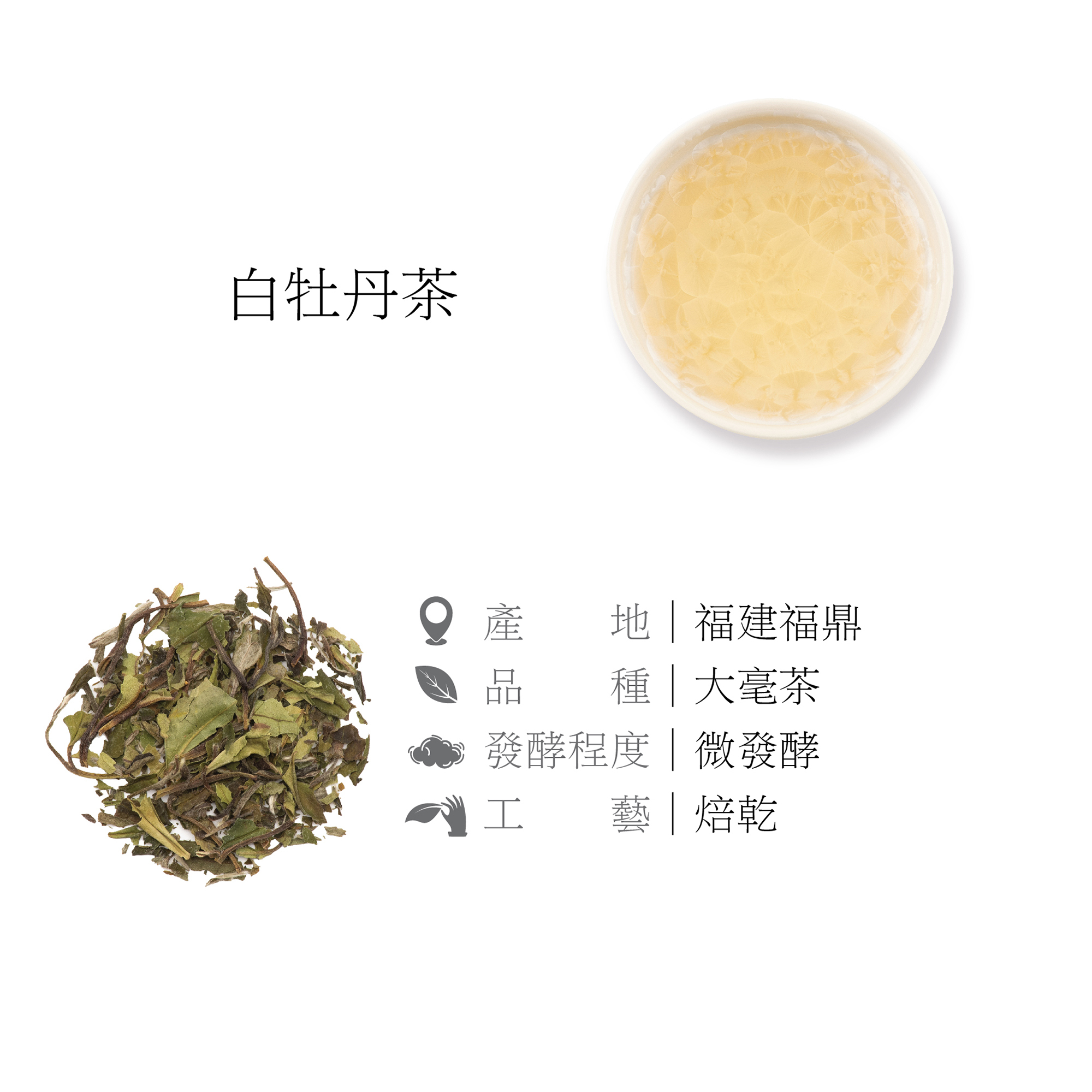 白牡丹 (白茶):抗菌消炎,清肝明目,生津止渴。